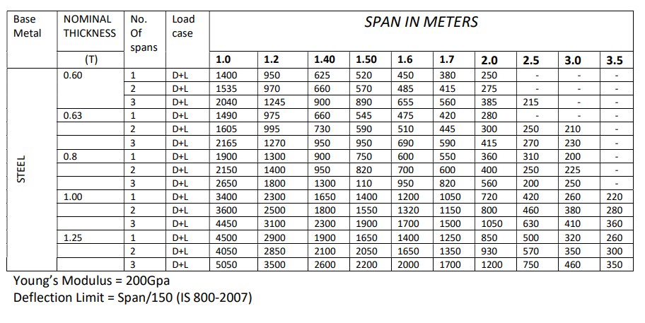 Purlin Sizes :  150 to 300 mm
