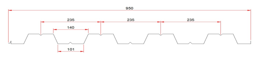 SMBS 52-950 Decking Profile 52mm Depth,235mm Pitch and