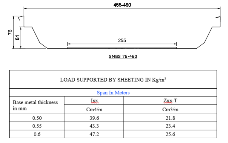 SMBS 76-460 having its Profile depth of 76mm with 25mm Seaming height is well designed for faster water shedding and this Roof panels are Permanently Seamed together with 360 Degree Double Lock Seam Sheets using Hand Seamers and Electric Seamers where in it is designed as Water and Dust Proof. Roof Seaming Clips are designed with Stainless Steel tabs to secure well and seamed along with the Roof Sheets